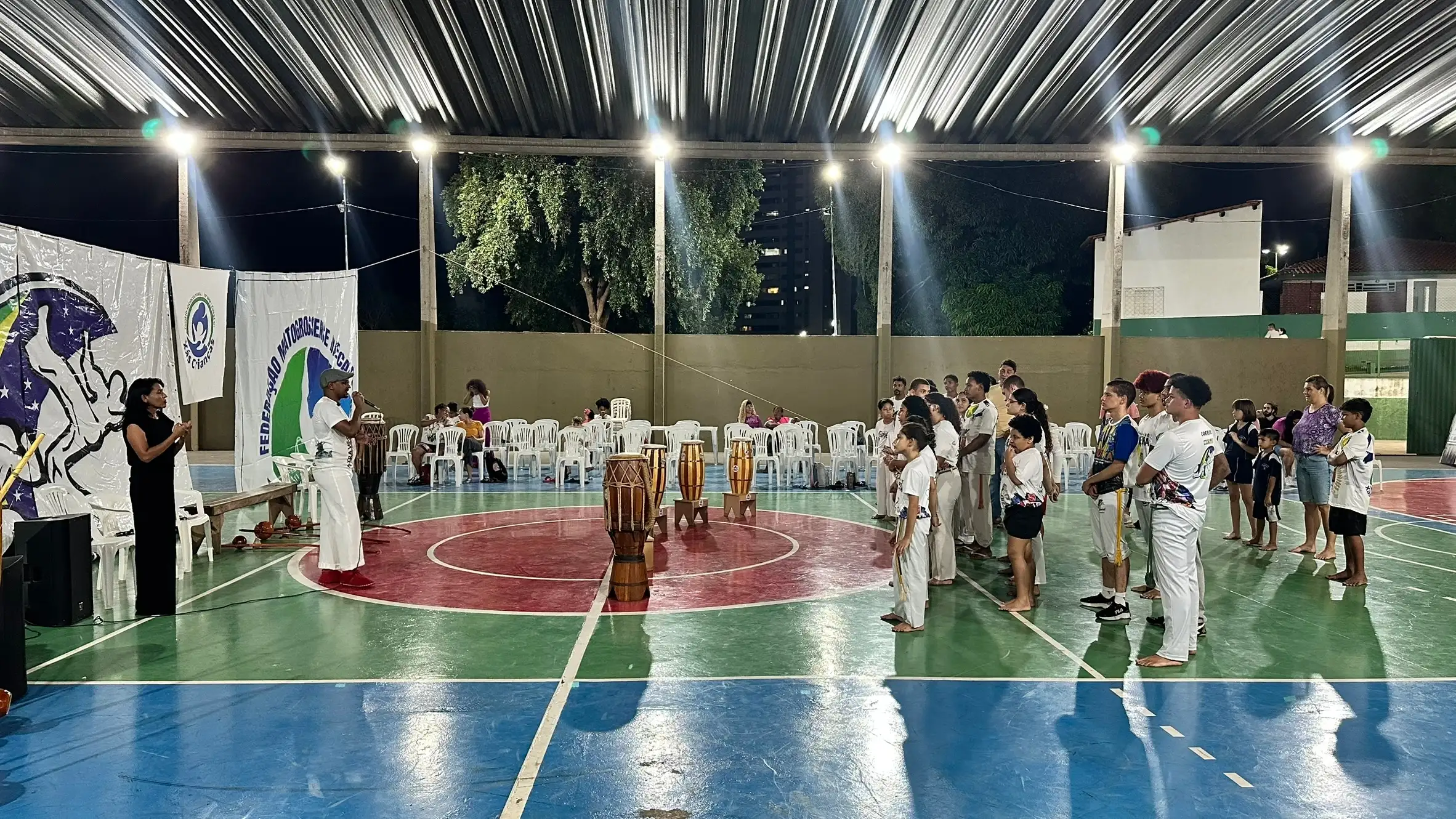 Atividades culturais e esportivas através da capoeira, preservando a identidade cultural brasileira.