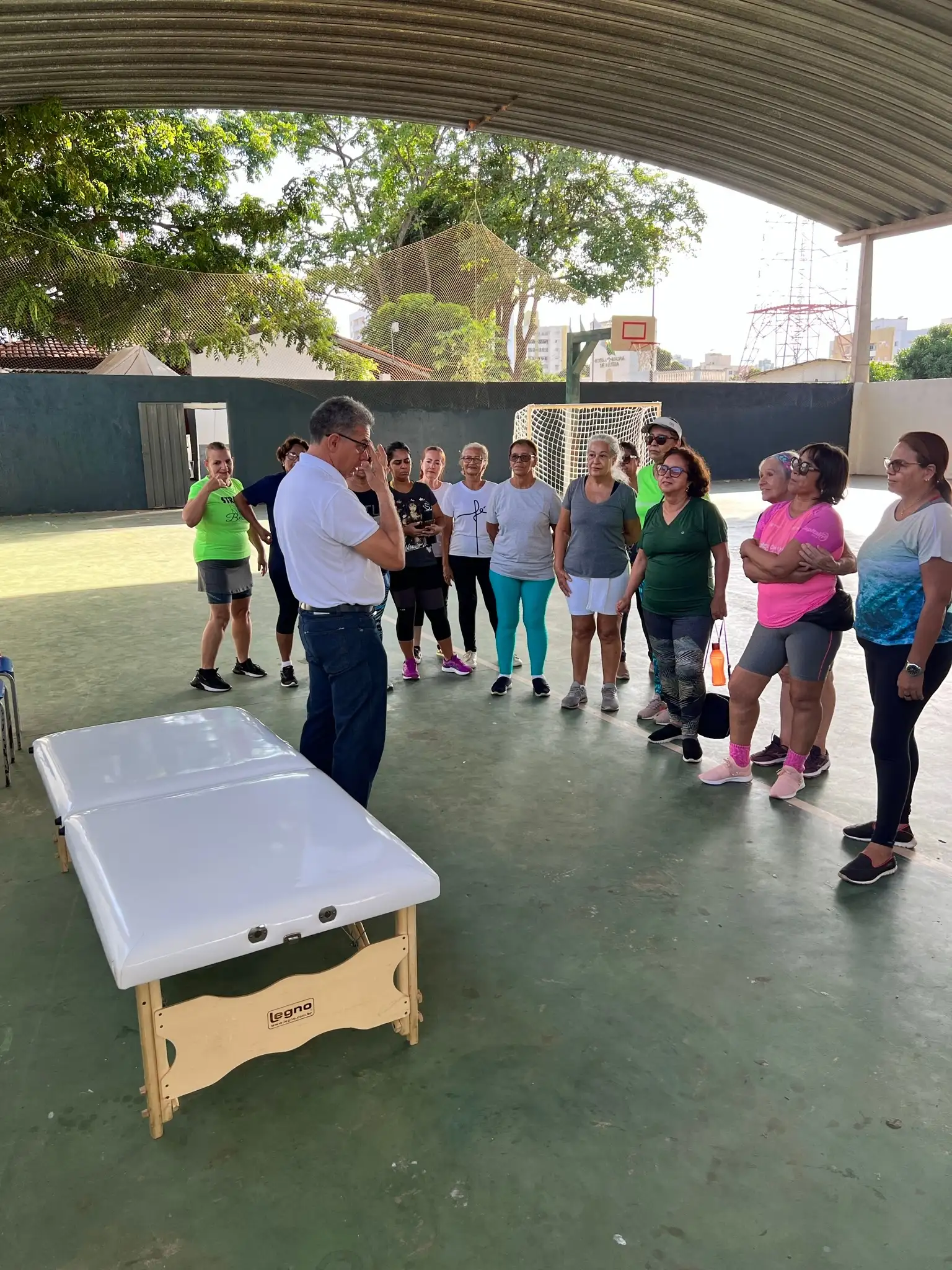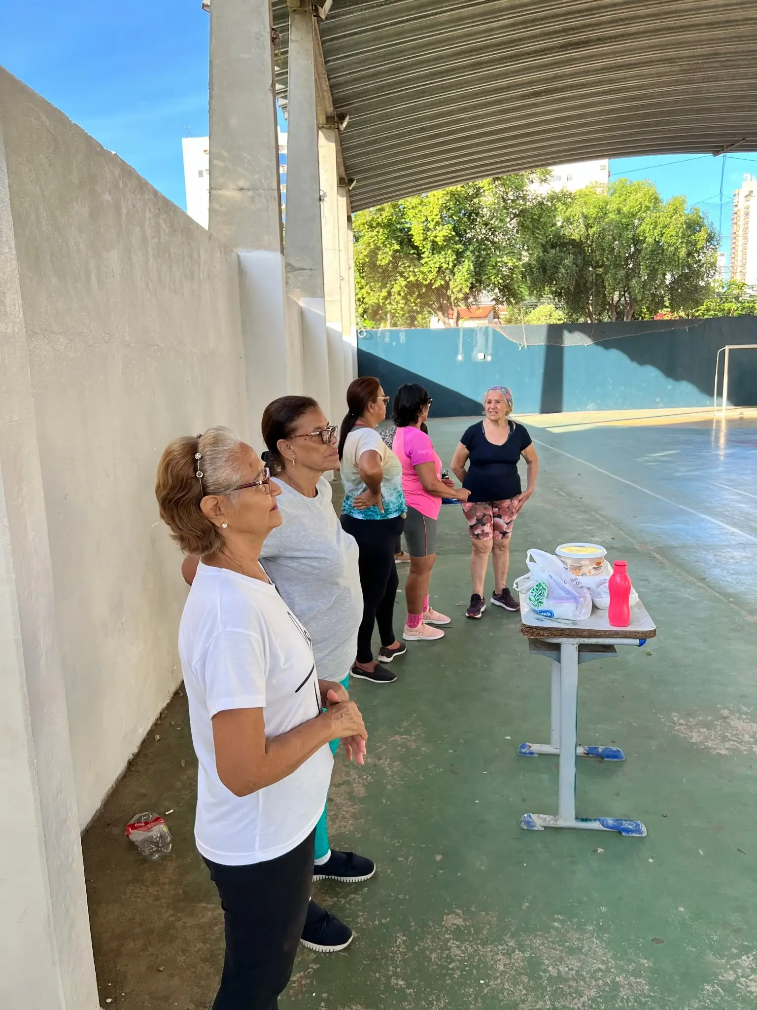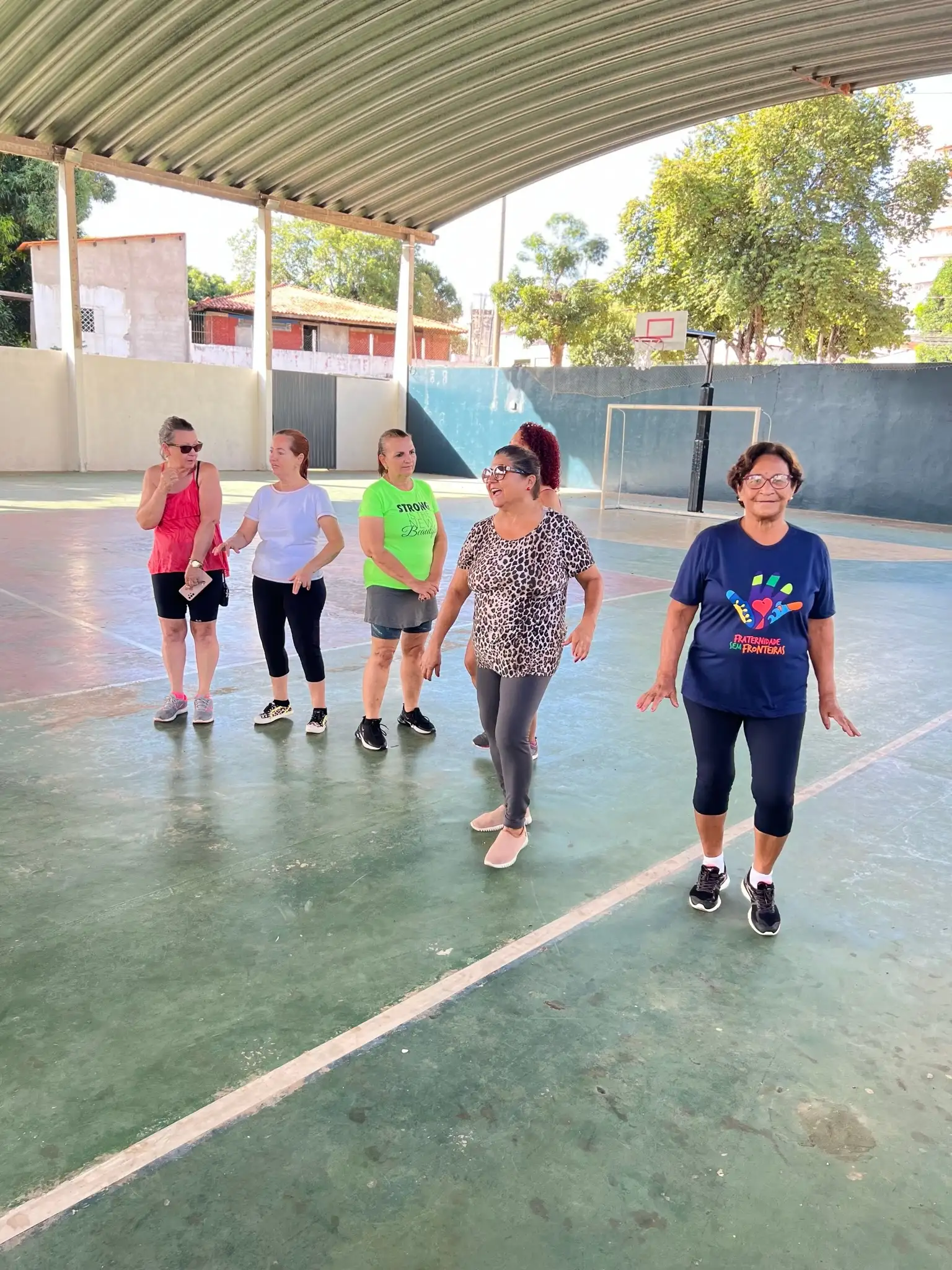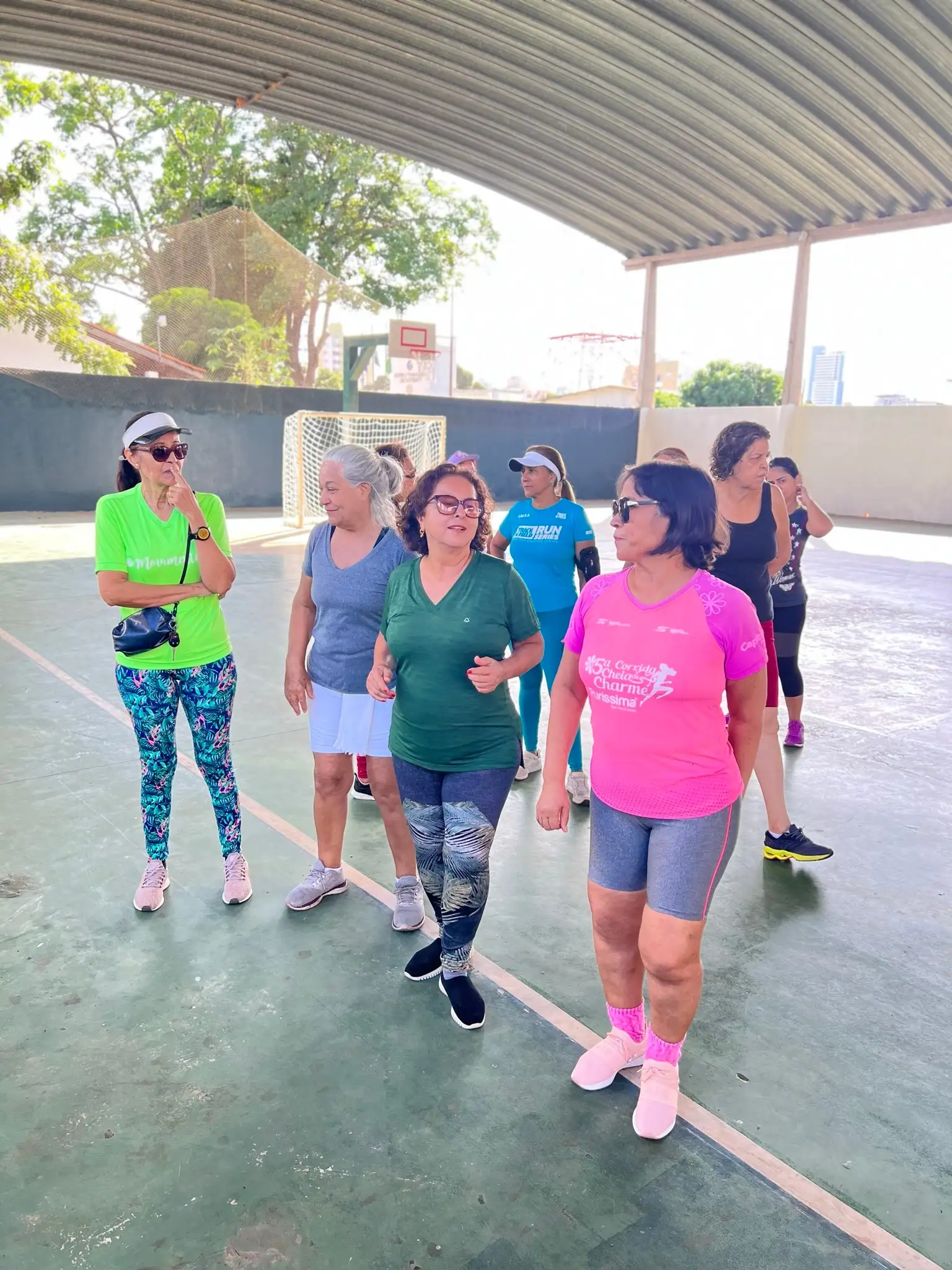 Exercícios físicos voltados para idosos, promovendo bem-estar, saúde e integração social.