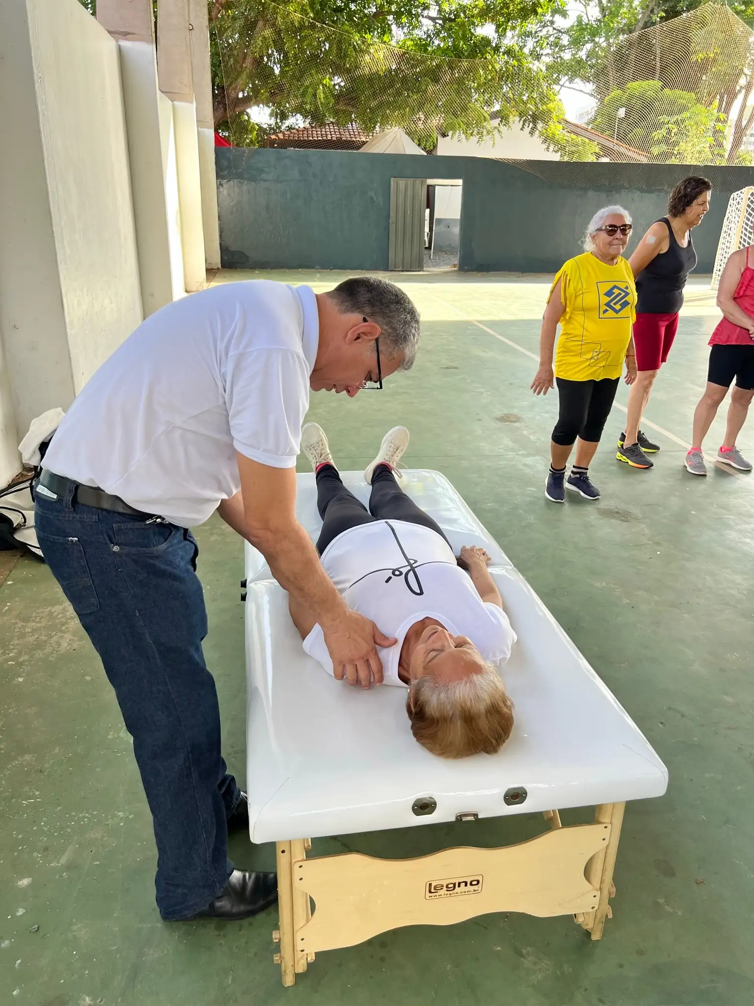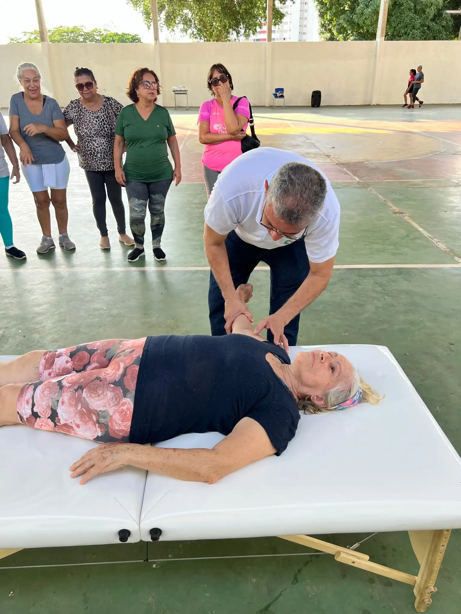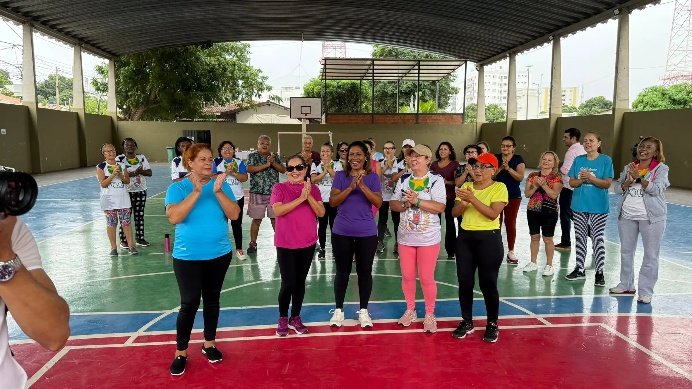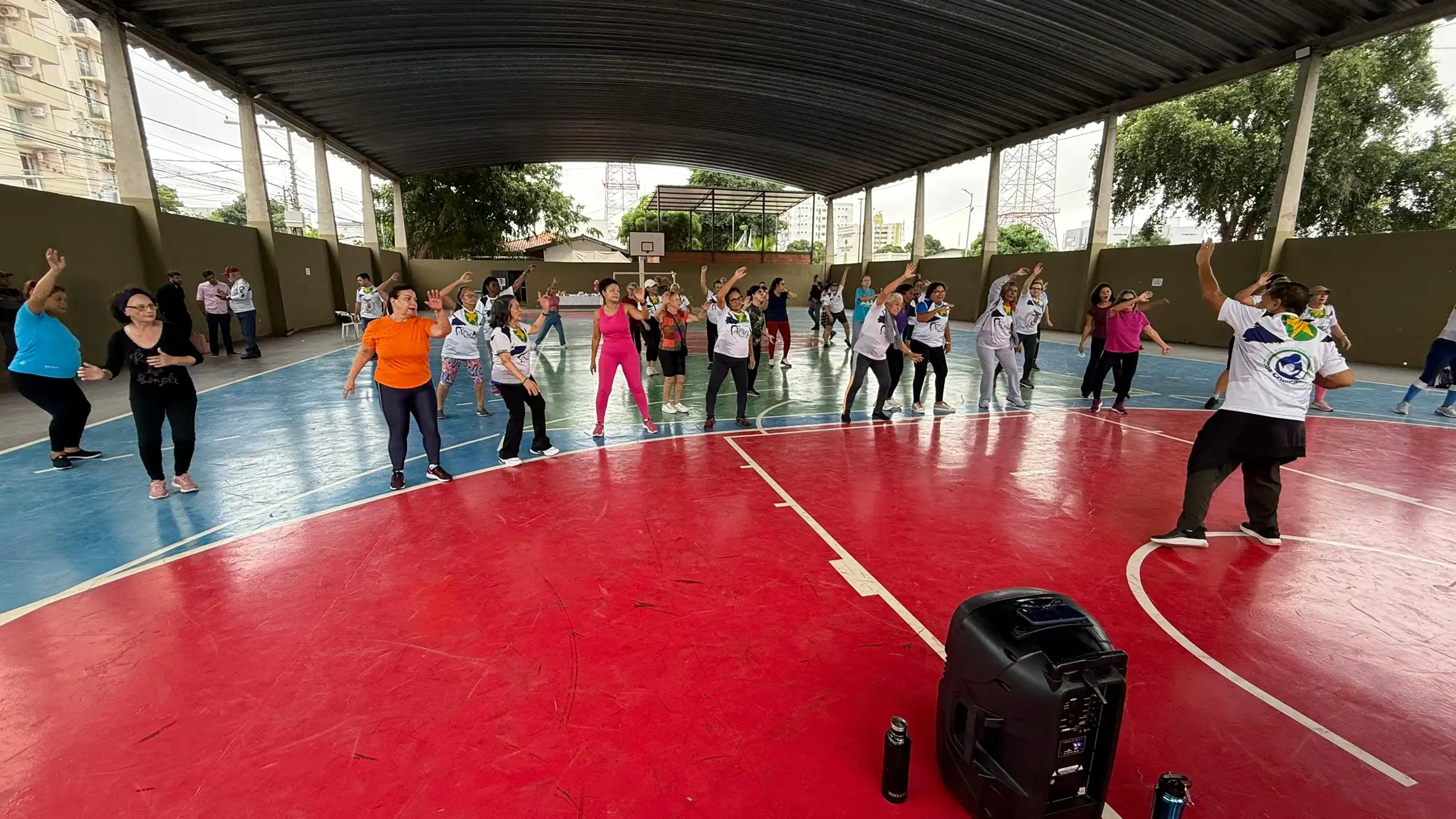 Exercícios físicos voltados para idosos, promovendo bem-estar, saúde e integração social.